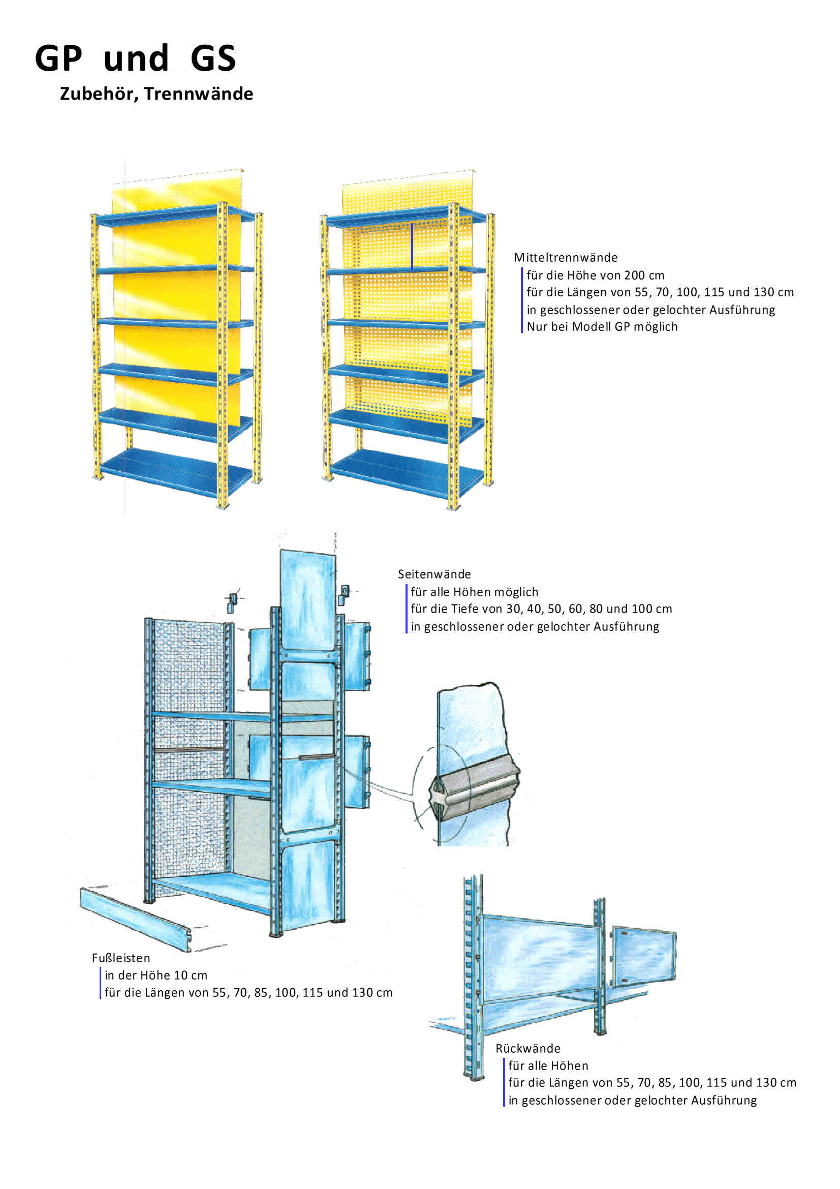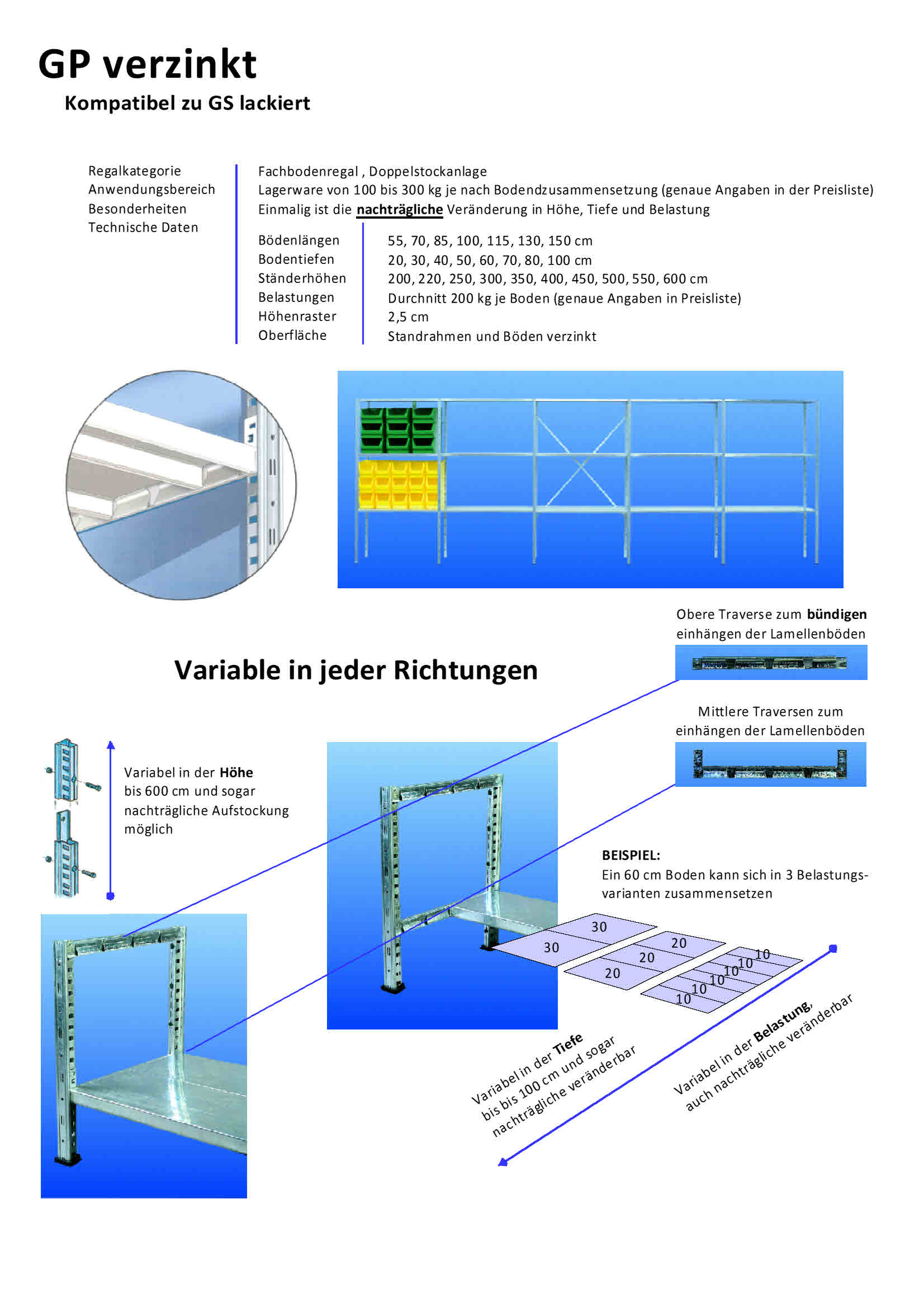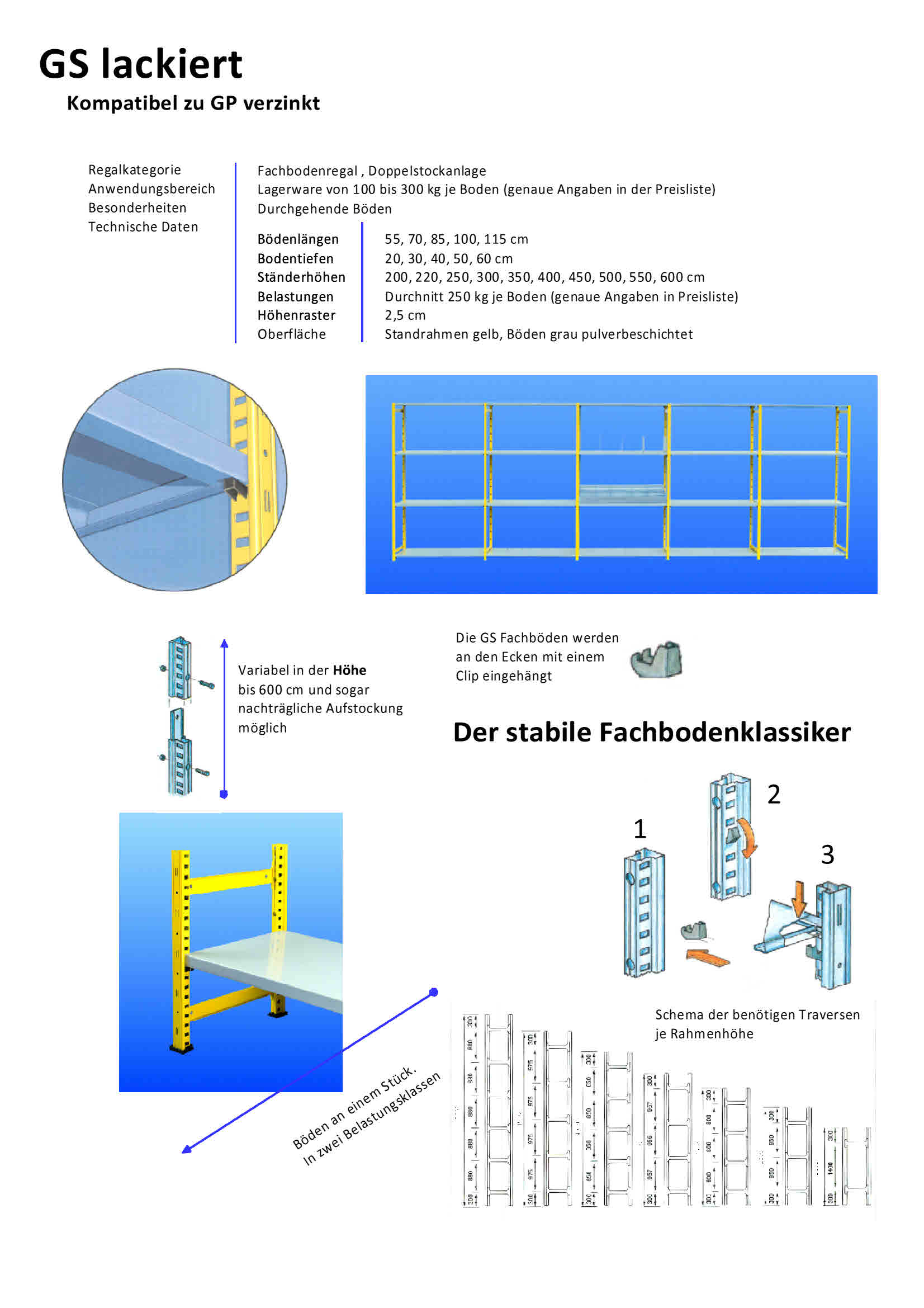 Fachbodenregale GP verzinkt und GS lackiert