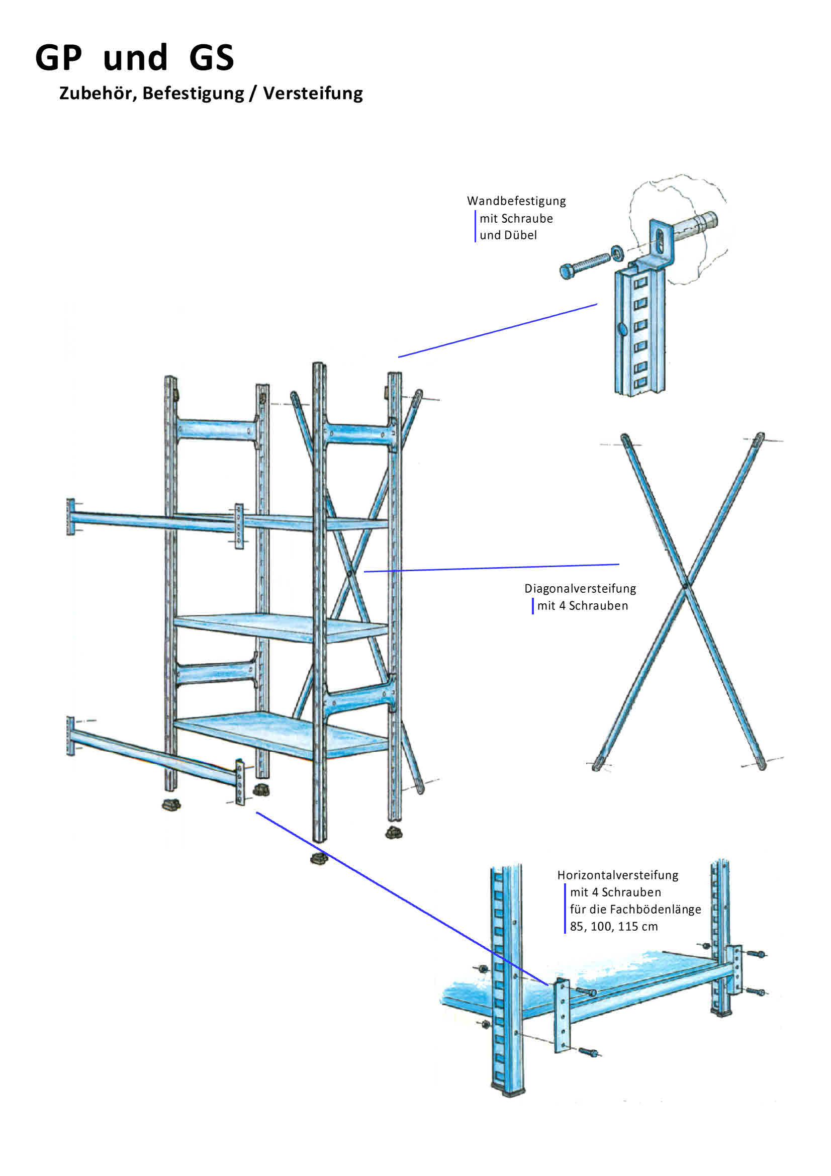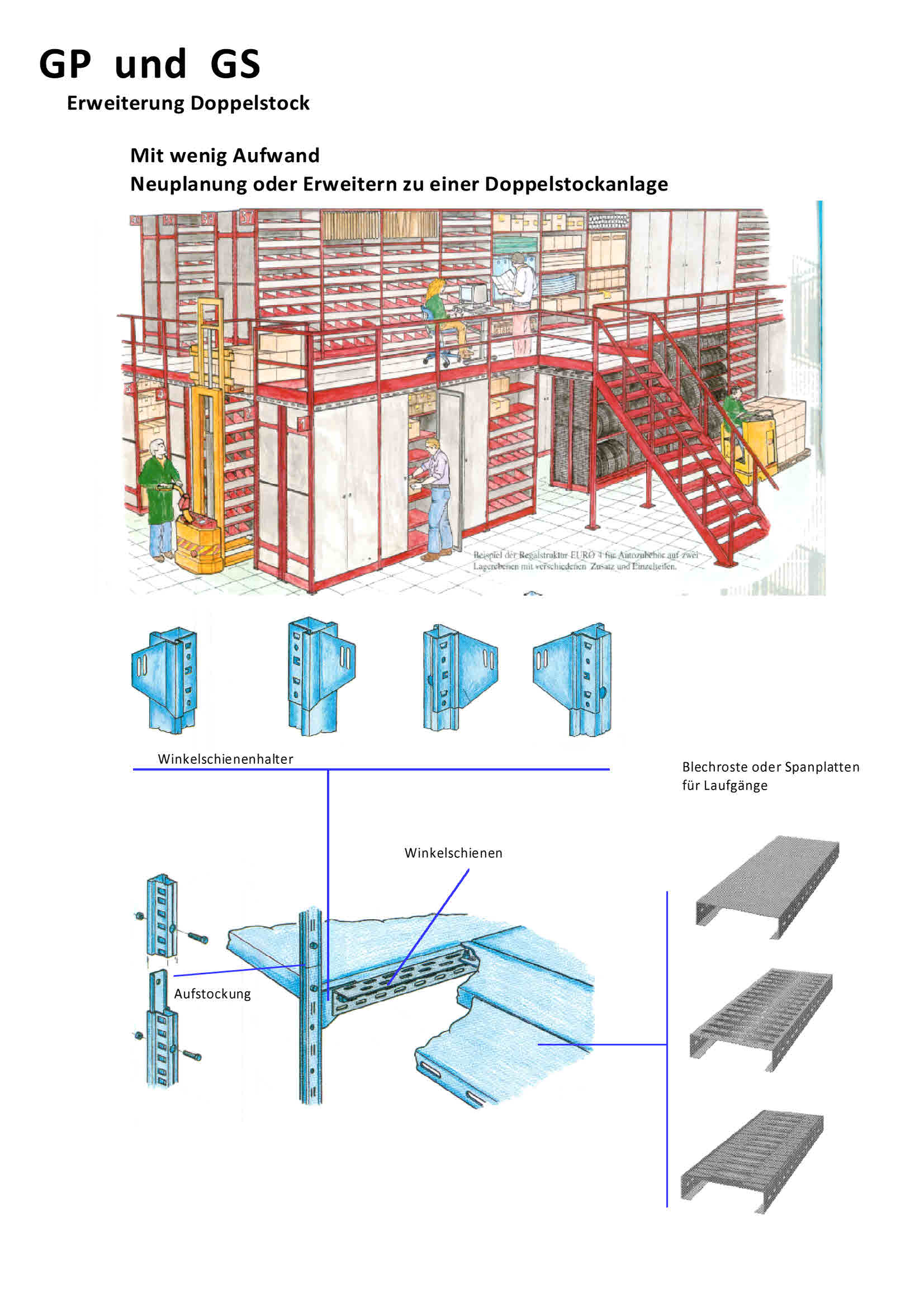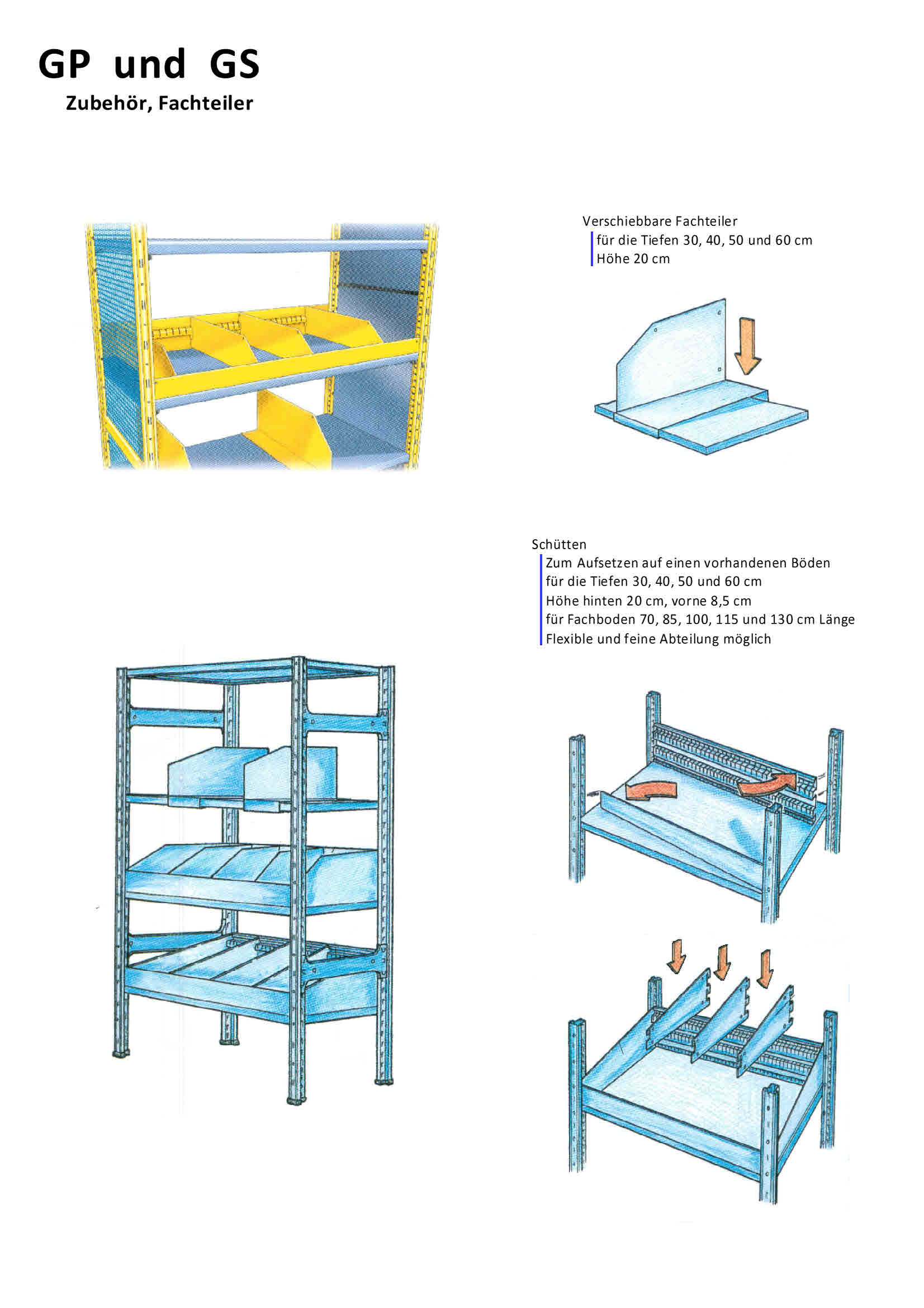 Fachbodenregale GP verzinkt und GS lackiert